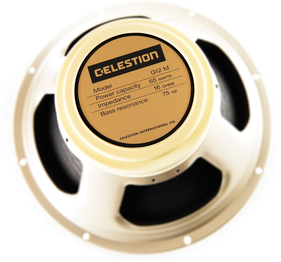 G12M Greenback, можливо, самий класичний вінтажний гітарний динамік Celestion з керамічним магнітом. Розроблений в середині шістдесятих років, він був швидко прийнятий музикантами, такими як Хендрікс, Клептон, Бек і Пейдж, які сформували гучний і агресивний блюз-рок стиль гри на електрогітарі, характеризує ту музичну еру.