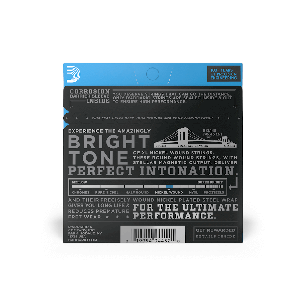 Струни XL виготовлені з нікельованої сталі, відомої своїм видатним яскравим звучанням і чудовою інтонацією.