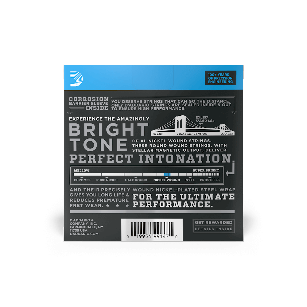Струни XL виготовлені з нікельованої сталі, відомої своїм видатним яскравим звучанням і чудовою інтонацією.