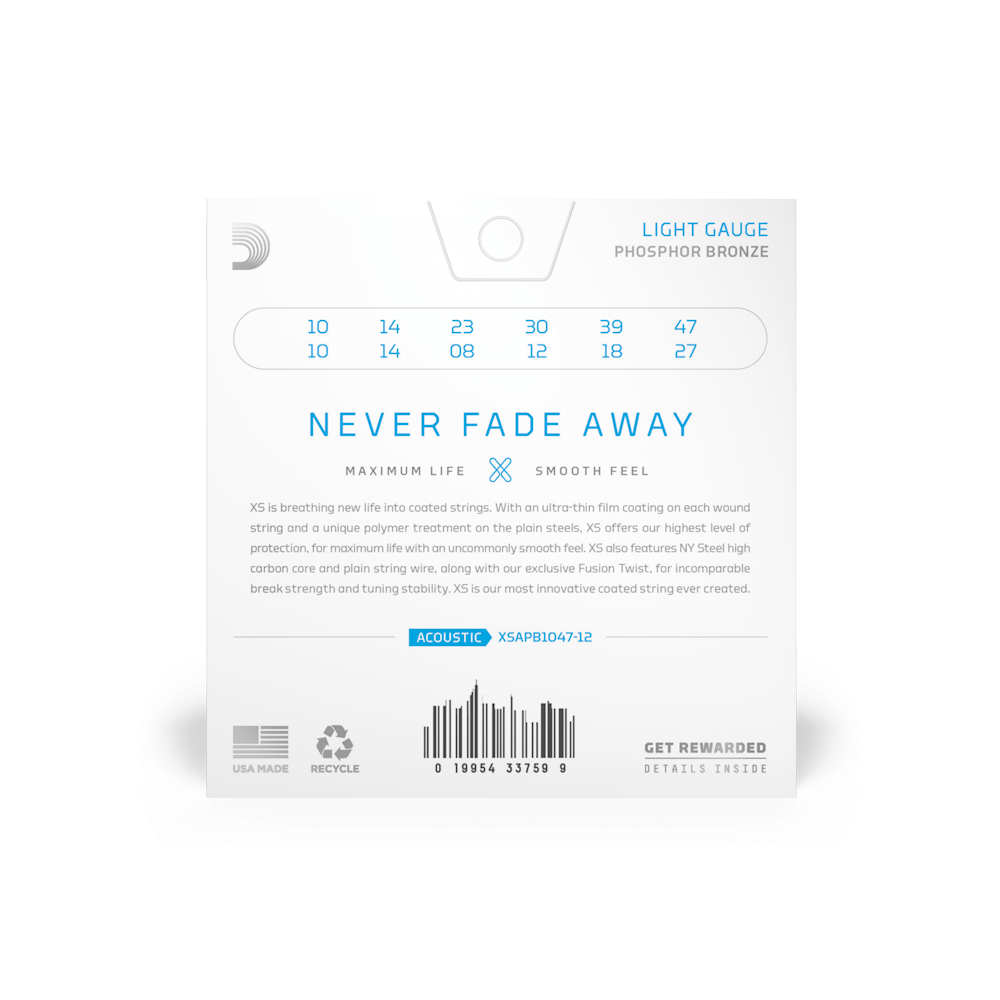 D’Addario XS Acoustic Phosphor Bronze поєднує в собі наш найпопулярніший сплав для акустичних гітар з найбільш передовою технологією покриття струн