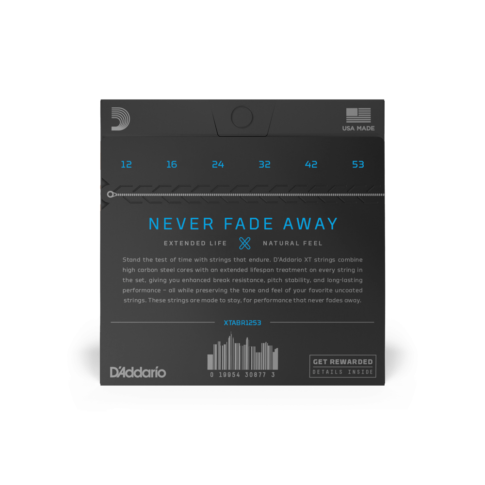 D’Addario XT – це перші струни, що поєднують сердечники з високовуглецевої сталі і навивку з найпопулярніших сплавів зі спеціальним захисним просоченням кожної струни в наборі! Ці струни неймовірно міцні, відрізняються поліпшеною стабільністю строю та тривалим терміном служби – при цьому зберігаючи звучання і відчуття твоїх улюблених струн без покриття! D’Addario XT створені для максимальної довговічності й незабутніх виступів!