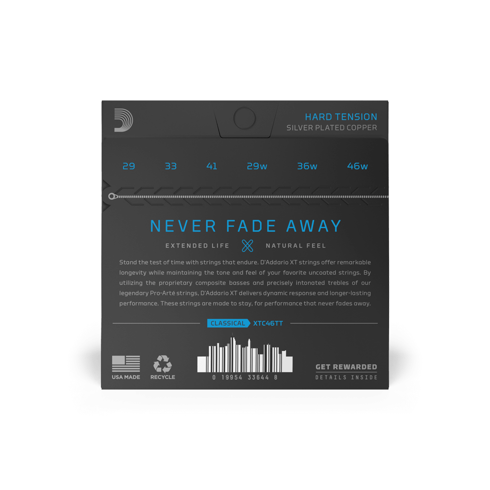 Басові струни для класичної гітари D’Addario XT оснащені композитним осердям Pro-Arté і високоякісною обмоткою з особливим захисним просоченням. У поєднанні з прецизійно виготовленими дискантами Pro-Arté цей набір здатен передати повний динамічний діапазон звучання твого інструменту, зберігаючи точність інтонування і, звичайно ж, збільшити термін служби. Всі дисканти сортуються за допомогою лазерного устаткування, яке вимірює діаметр і натяг, щоб підібрати оптимальні за звучанням зразки для кожного набору.