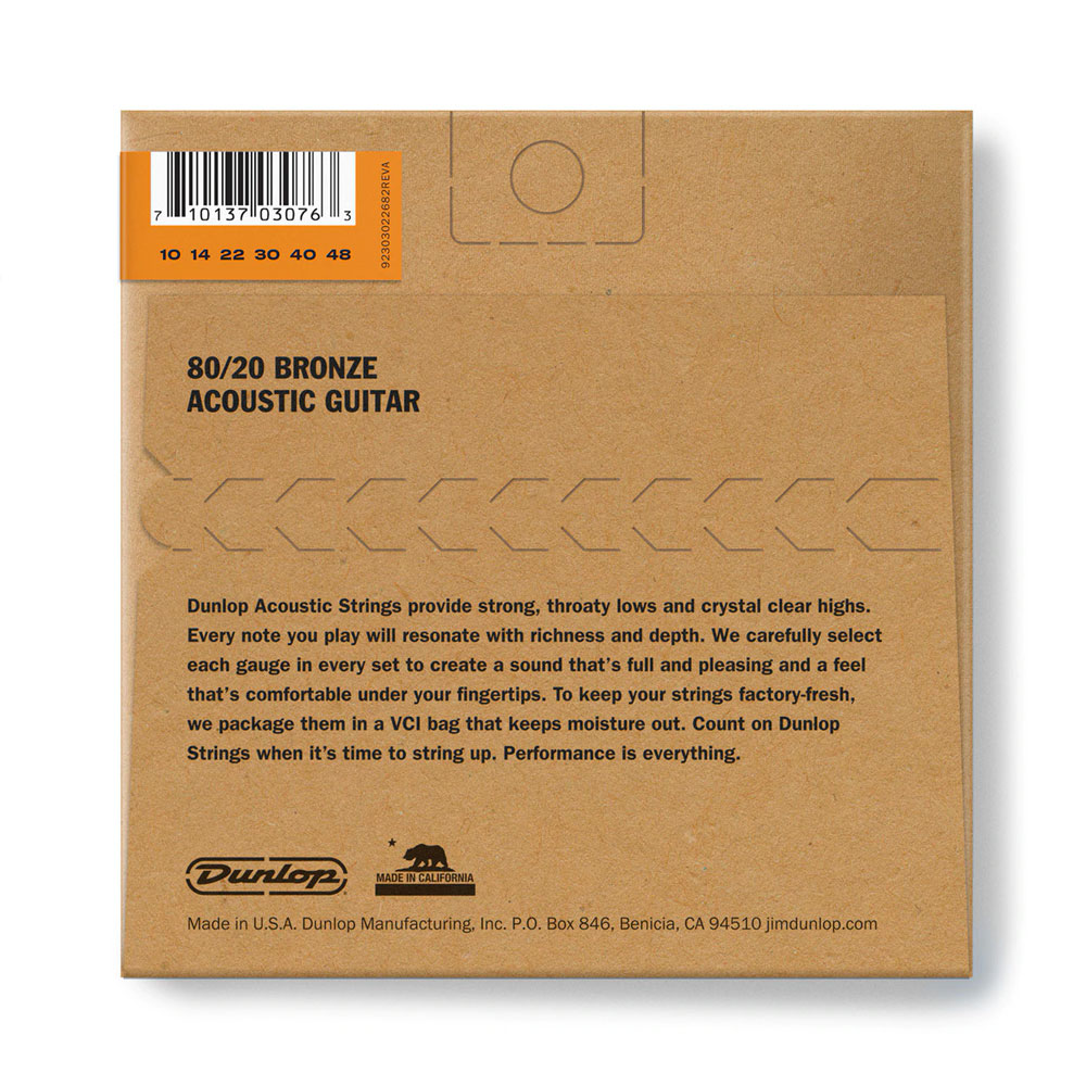 Кожен набір струн Dunlop для акустичних гітар таїть в собі яскраве і іскристе звучання для динамічного і експресивного акустичного подання. Відбірна обмотка в поєднанні з точною конструкцією в результаті створюють універсальні струни, надійні і міцні для того, щоб вистояти перед агресивною грою боєм – і при цьому досить чуйні, щоб передати динамічну пальцеву гру. Акорди дзвенять із завидною чіткістю і розбірливістю, низи ‘гарчать’, а гармоніки просто вистрілюють з інструменту!
