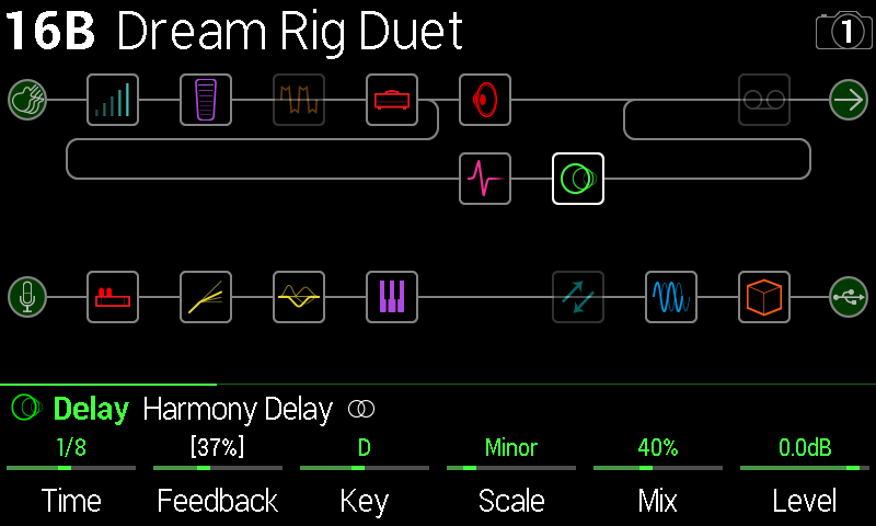 - Режим Pedal Edit, для налаштувань без допомоги рук (керування параметрами переноситься на футсвіч і педаль експресії)